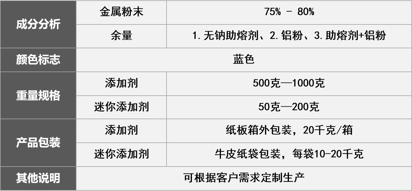 3、余量:a、无钠助熔剂 b、铝粉 c、助熔剂 铝粉